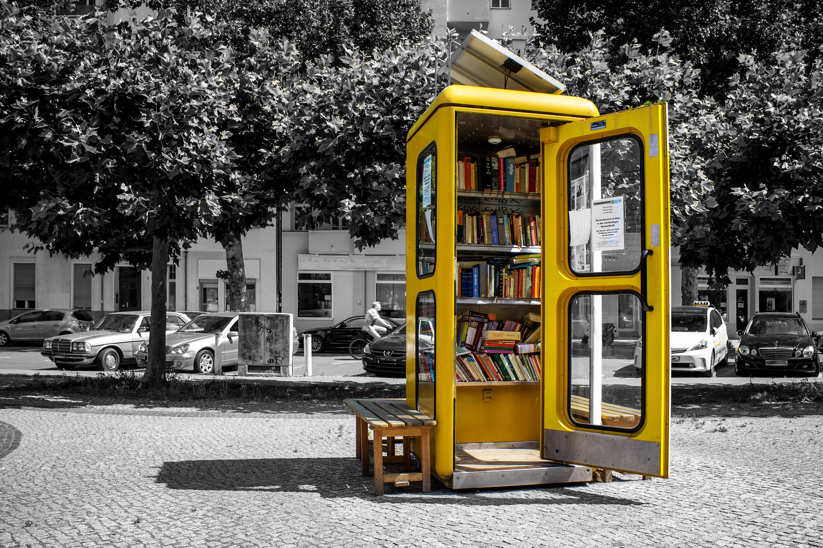 Neulich traf ich beim Ordnen und Sortieren der Bücher an der BücherboXX am Mierendorffplatz auf interessante Menschen. Ein Mann ist mir besonders in Erinnerung geblieben, weil er reflexartig nach einem bestimmten Buch in meiner Hand griff. Es hat sich dann herausgestellt, dass es das Logbuch der Geocacher war, was er schon vor mir in den Regalen suchte. Es entwickelte sich ein nettes Gespräch und auch der Hinweis, dass das Buch, wenn ich sortiert habe, immer an der gleichen, markierten Stelle stehen wird. Nur wer weiß davon eigentlich? Das Logbuch hat einen Vermerk im Buchdeckel und ist auch außen am Schnitt mit den vier Farben gelb – grün- blau – rot markiert. Dieses Buch sollte in der BücherboXX bleiben, weil Geocacher sich übers Internet diese besonderen Orte übermitteln und beim Besuch einen Eintrag hinterlassen. Ein weiterer Besucher hat uns das wunderbare Bild zur Verfügung gestellt: „Skley“ stellt uns das Foto via CC-Lizenz zur Verfügung. Herzlichen Dank an dieser Stelle.