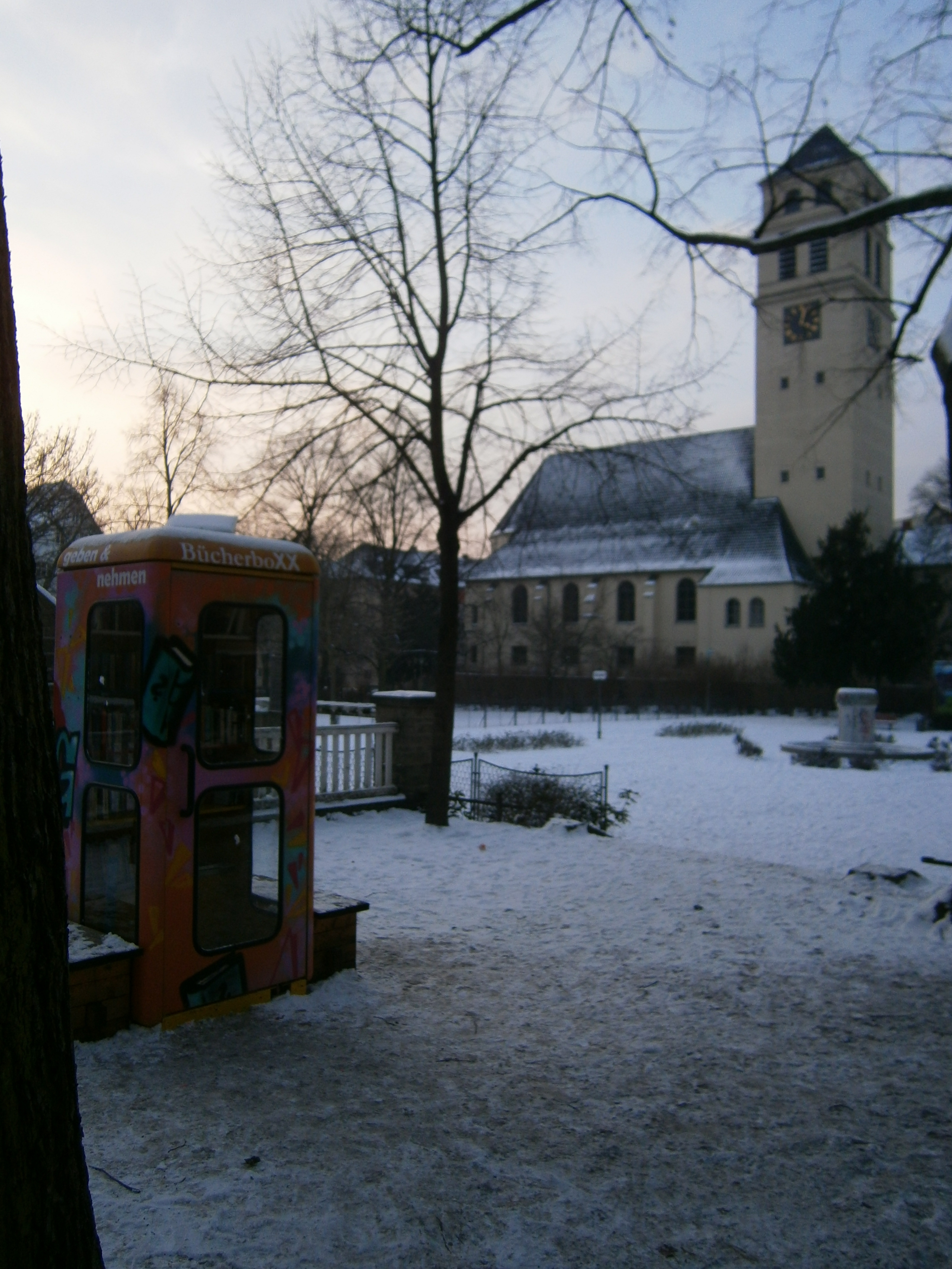 Schon seit dem 27. Januar 2014 werde ich – die BücherboXX – von vielen Menschen auf dem Markusplatz in Steglitz besucht. Ich sehe das vor allen Dingen an den Einträgen, die zu den registrierten Büchern kommen. Dafür vielen Dank! Die Erprobungsphase dauert in etwa drei Monate. Dann sollte klar sein, wie sich eine Betreuung der BücherboXX gestalten lässt. In meinem Umfeld ist eine Grundschule sowie eine Kita und etwas entfernter auch ein Gymnasium. Das wird sicherlich spannend, sind doch sonst meist wenig Kinder- und Jugendbücher auf meinen Regalen. Ich freue mich! Und am