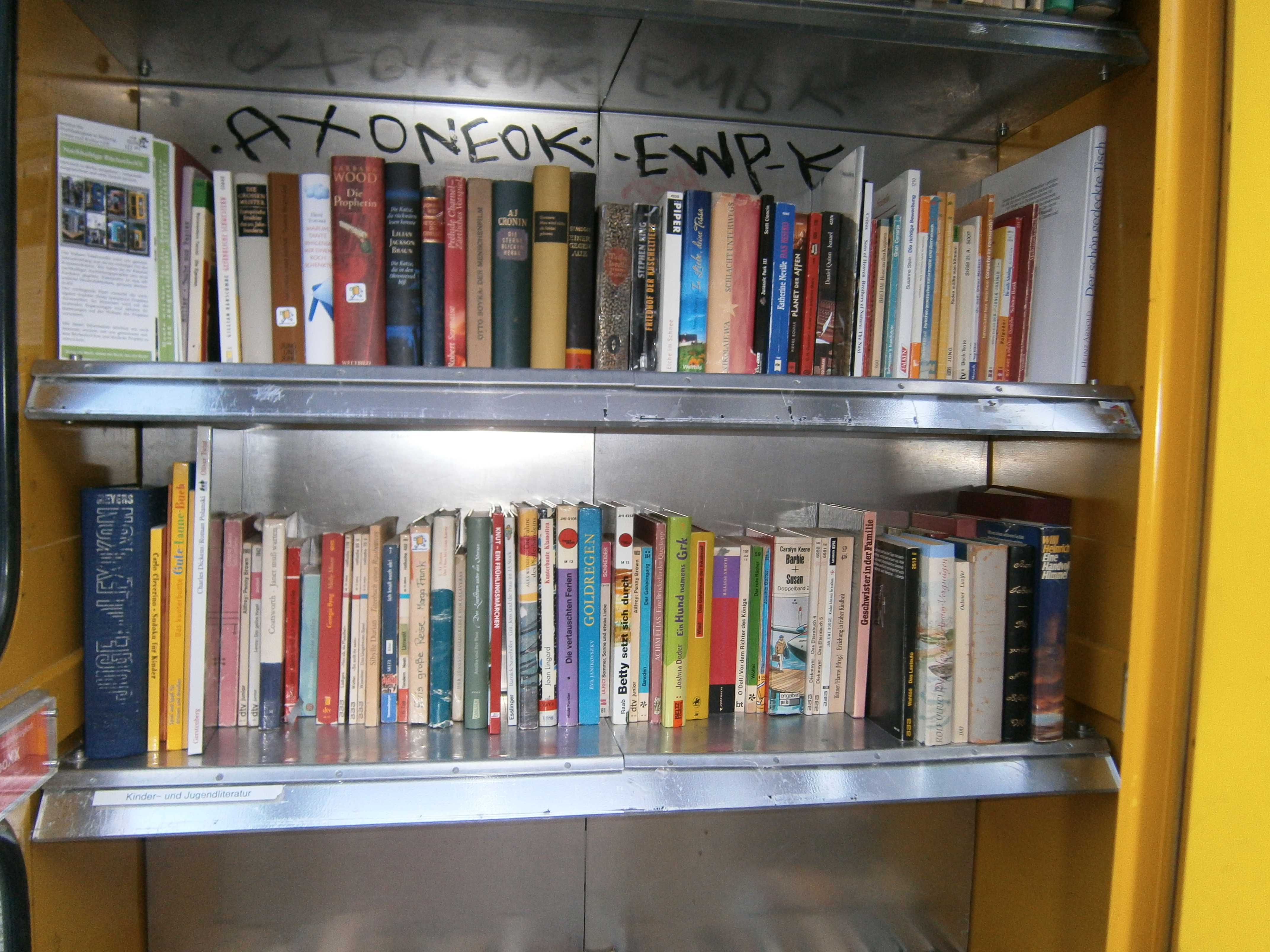 In den anschliessend wunderschönen Frühlingstagen konnte ich so manche BesucherInnen auf den Bänken rund um die BoXX schmökern sehen. Auch fanden viele Entnahmen statt, so dass sich die Reihen sehr gelichtet haben, wie ich bei meinen Kurzbesuchen feststellen konnte. Also, es ist wieder Platz.