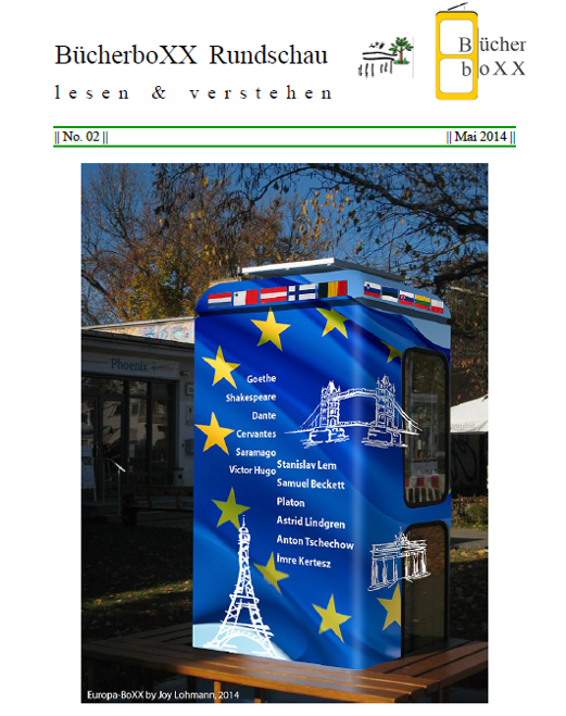Europa spielt in dieser neuen Ausgabe eine wesentliche Rolle, wird doch hier schon ein erster Entwurf der neuen Europa-BücherboXX präsentiert. Das Original wird am 9. Mai 2014 vor dem Brandenburger Tor stehen und die Europameile mit Büchern mit europäischem Bezug unterstützen. Viel Vergnügen beim Lesen!