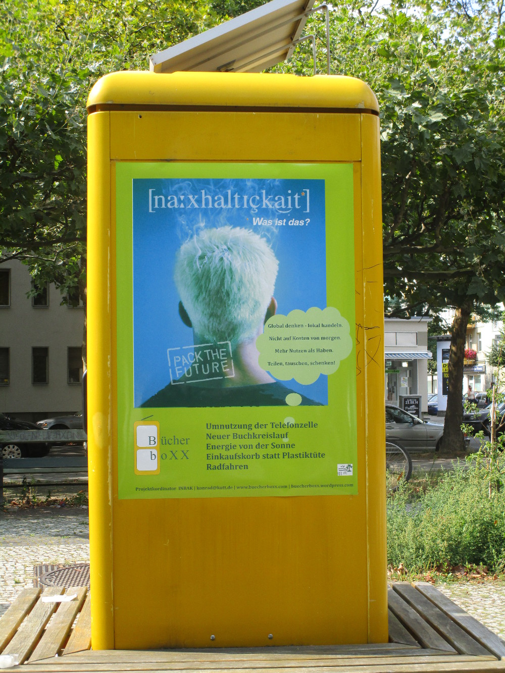 Die BücherboXX am Mierendorffplatz gibt ab sofort eine Antwort auf die oben gestellte Frage – zum Einen auf der Rückseite mit einem Plakat (Bild) und zum anderen, mit einem themenbezogenen Regal. Wer mehr wissen will oder Wissen zu den Themen Umwelt, Ökologie und Nachhaltigkeit anhand von Büchern weitergeben möchte, findet ab sofort in dem unteren Regal der BücherboXX Gelegenheit dazu.
