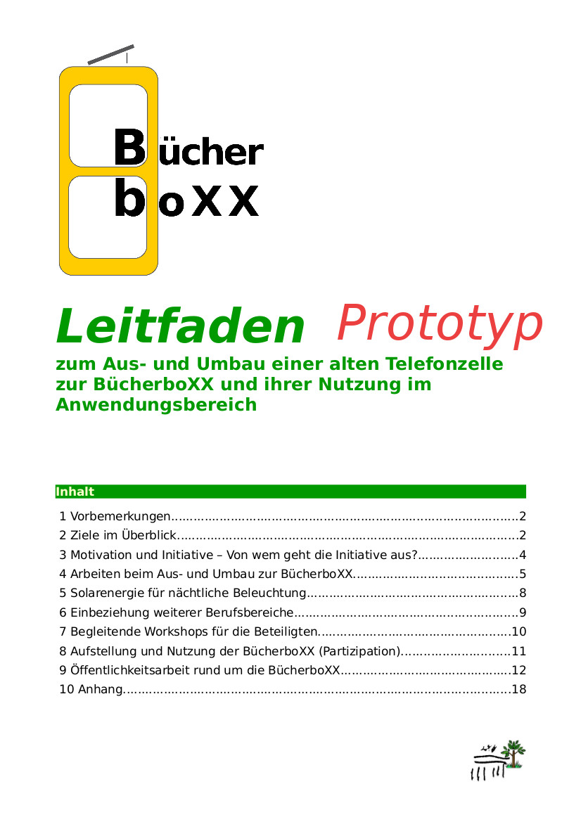 Mit dem Leitfaden möchten wir Hinweise geben zu den verschiedenen Aspekten des Projekts „Nachhaltige BücherboXX“. Durch die Prozessbegleitung von 15 BücherboXXen hat INBAK eine Fülle von Erfahrungen machen können und das Konzept im Laufe der Zeit stets weiterentwickelt.