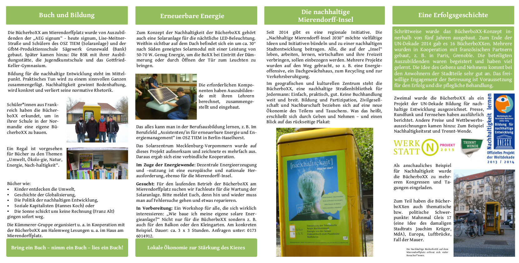 Das Programm auf der Bühne wird Gelegenheit geben, etwas zur Nachhaltigkeit der BücherboXX zu sagen.