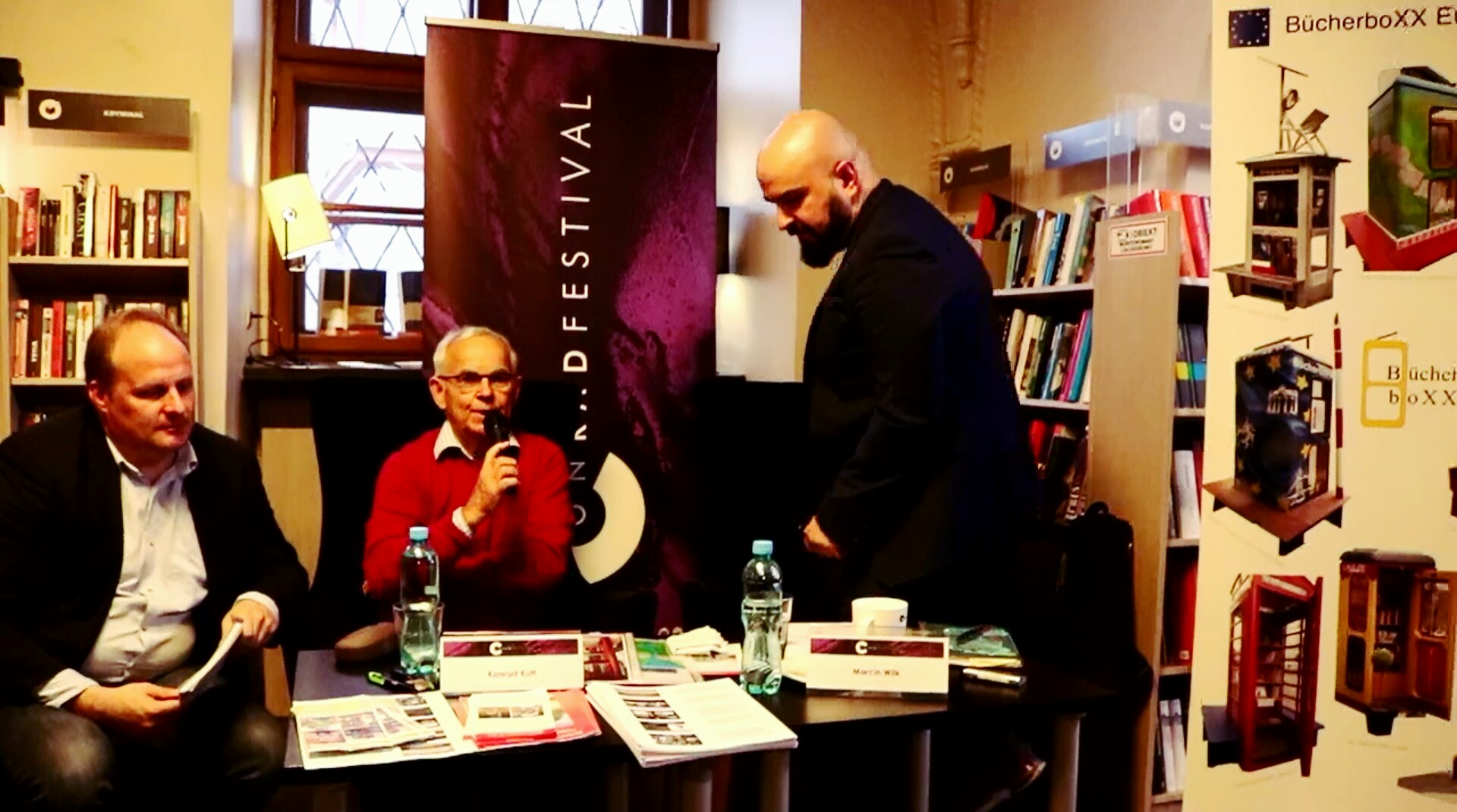 Die Nachhaltige BücherboXX war ein Thema auf dem literarischen „Conrad-Festival“ am 27. Oktober 2017 in Krakau. Konrad Kutt im Interview mit Marcin Wilk (Biograph von Anna Jantar) in der Buchhandlung „De Revolutionibus“. Die Stadt ist voller Kultur und Lese-Lust. Jetzt wird geprüft, wie man auch hier eine BiblioboXX nach deutsch-polnischem Vorbild aufstellen kann.