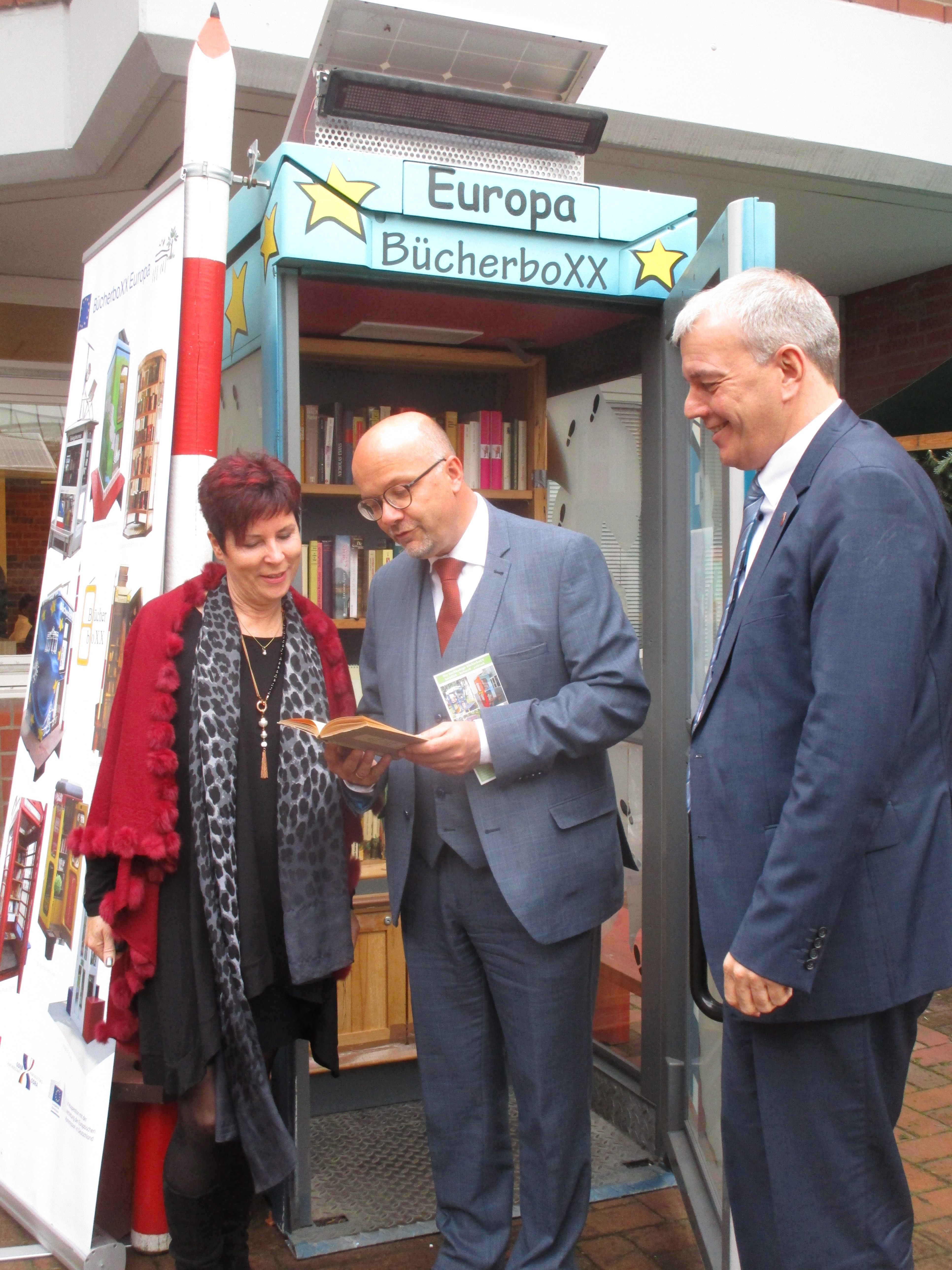 Zum Tag der offenen Tür im Annedore-Leber- Berufsbildungswerk (ALBBW) präsentierte sich die BücherboXX Europa II am 1. Dez. 2017 zur Bewunderung vieler Besucher. Donnerstag noch in Görlitz heute schon in Britz. Die lokale politische Prominenz fand lobende Worte, denn diesen Zuspruch braucht das geplante neue, anspruchsvolle Projekt: