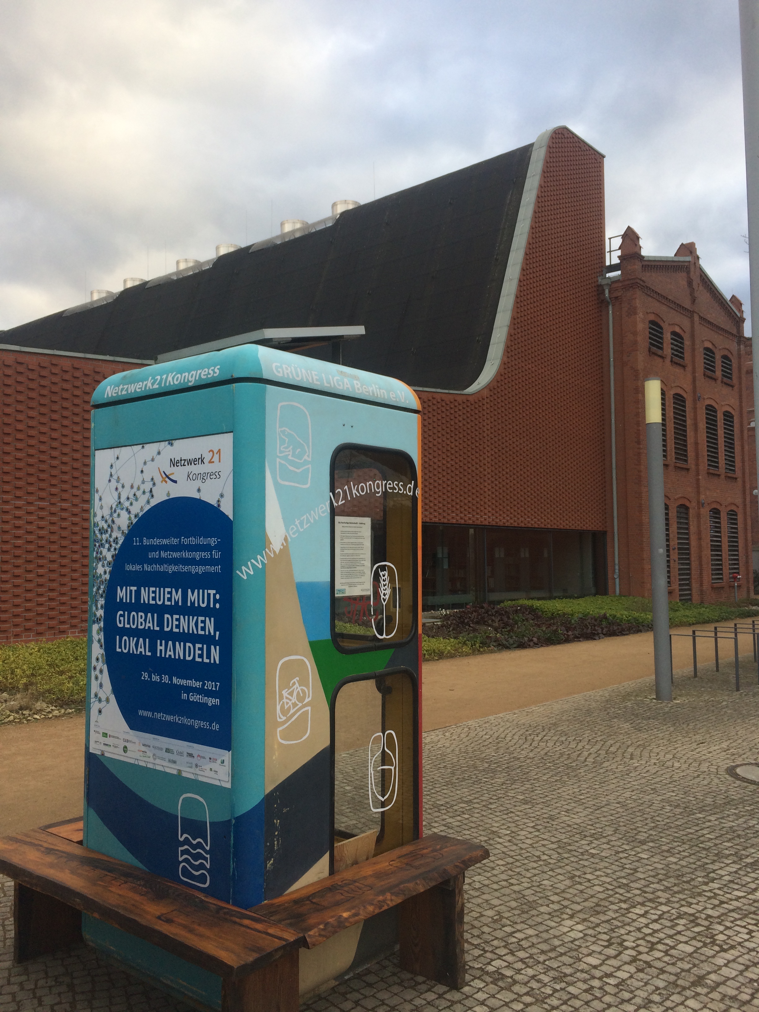 Die BücherboXX der GRÜNEN LIGA Berlin steht jetzt (wieder) vor dem Umweltbundesamt in Dessau und wirbt für den Netzwerk21Kongress am 10. und 11. Oktober 2018 in Dessau. Beleuchtet von einer Solaranlage und umrundet von einer Bank, lädt sie nicht nur zum Büchertausch, sondern auch zum direkten gemütlichen Schmökern ein.