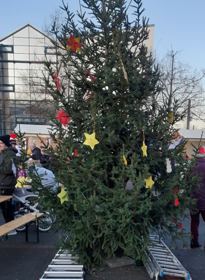 Tannenbaum von Kindern geschmückt
