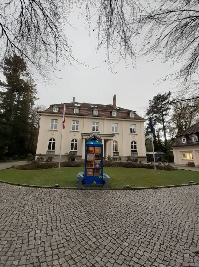 Neue EuropaboXX vor der Europäischen Akademie Berlin. TRIO-BücherboXX auf Wanderschaft.