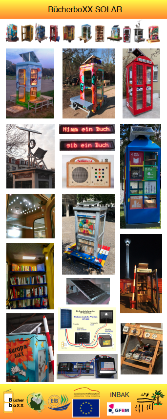 Im Rahmen eines Europäischen Projekts erasmus+ „Green Thinking Entrepreneur Youth“ wurde ein Leitfaden zur „Dezentralen Energiegewinnung“ erstellt. Gegenstand war der Bau einer Solaranlage für eine BücherboXX mit Unterstützung des Oberstufenzentrums Kraftfahrzeugtechnik des Vereins „Energie für Bildung“.