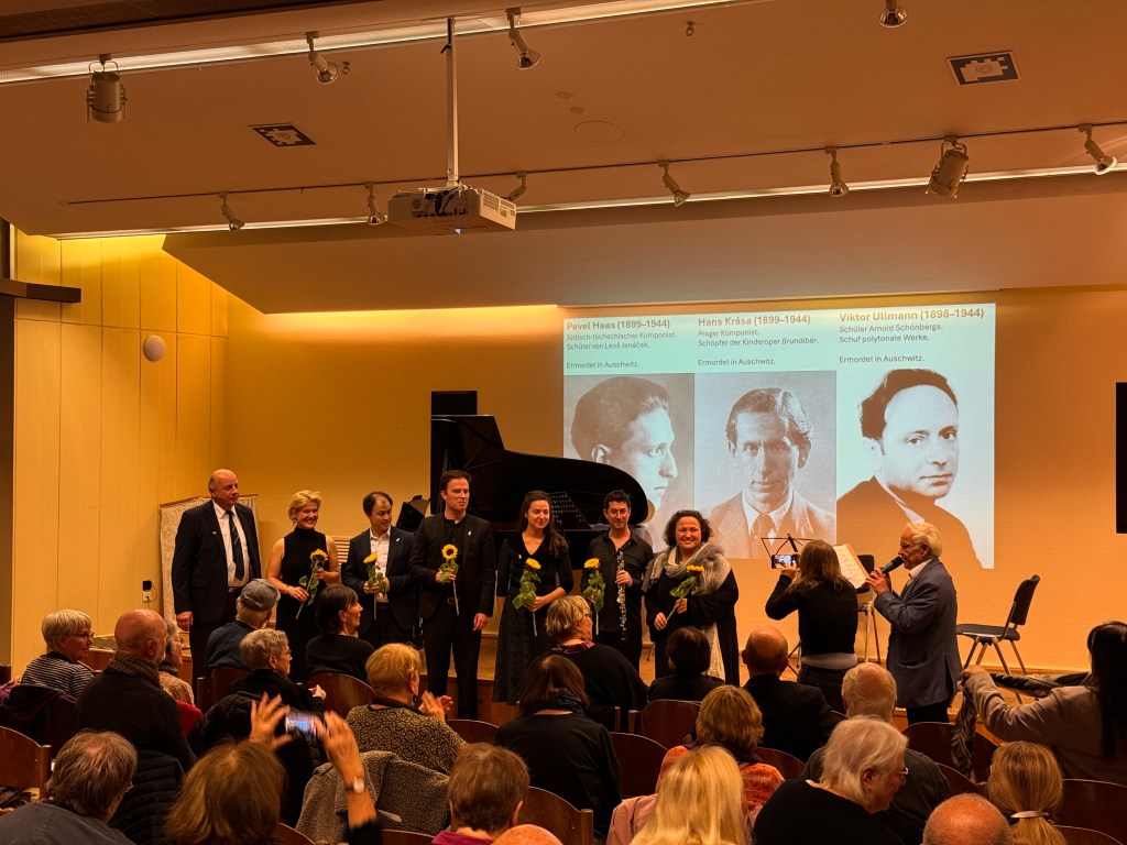 Der stetige Blick auf die drei Komponisten während gleichzeitig ihre Musik ins Ohr ging verband sich mit dem Gedanken an ihre Ermordung in Auschwitz.
