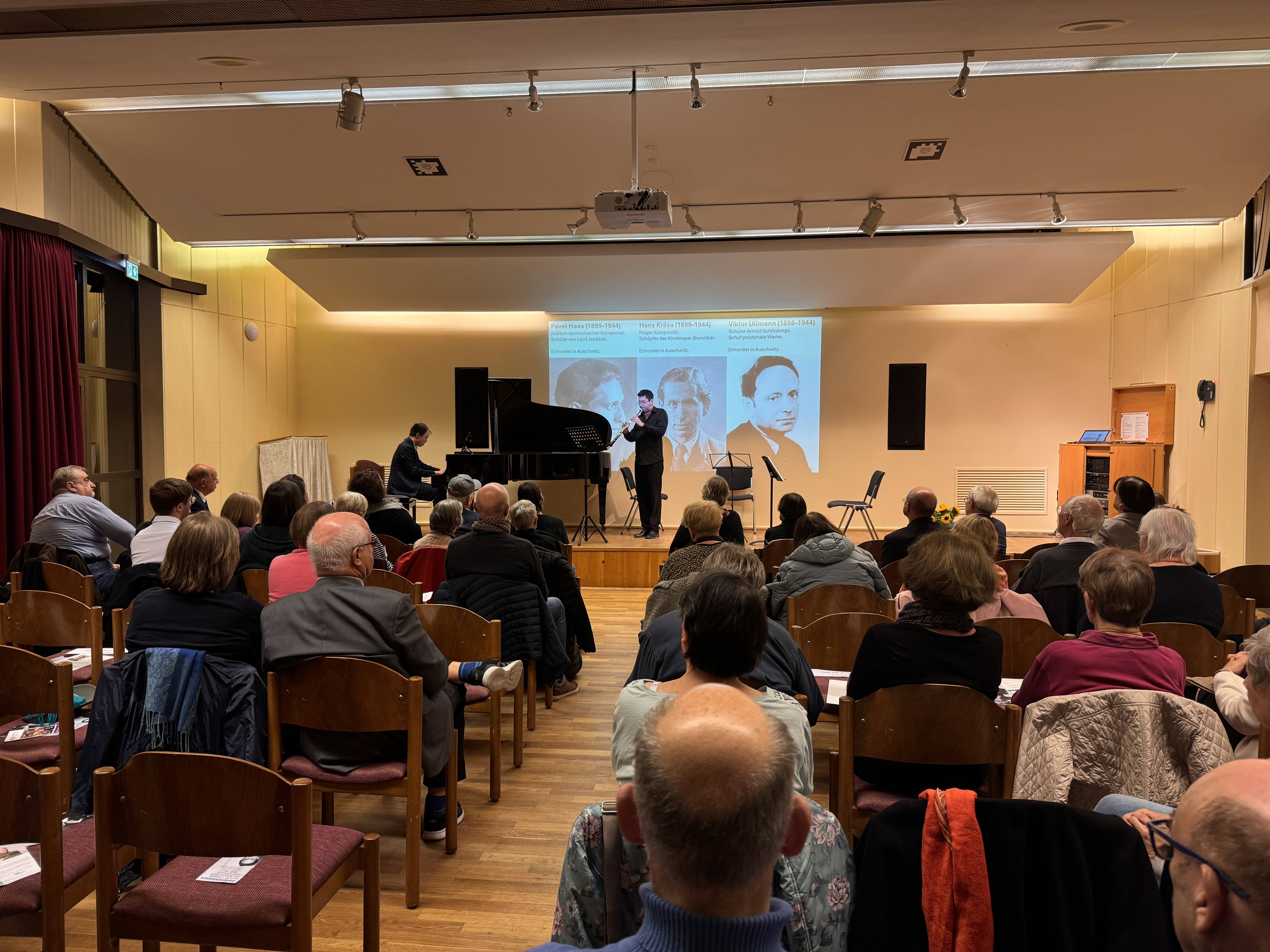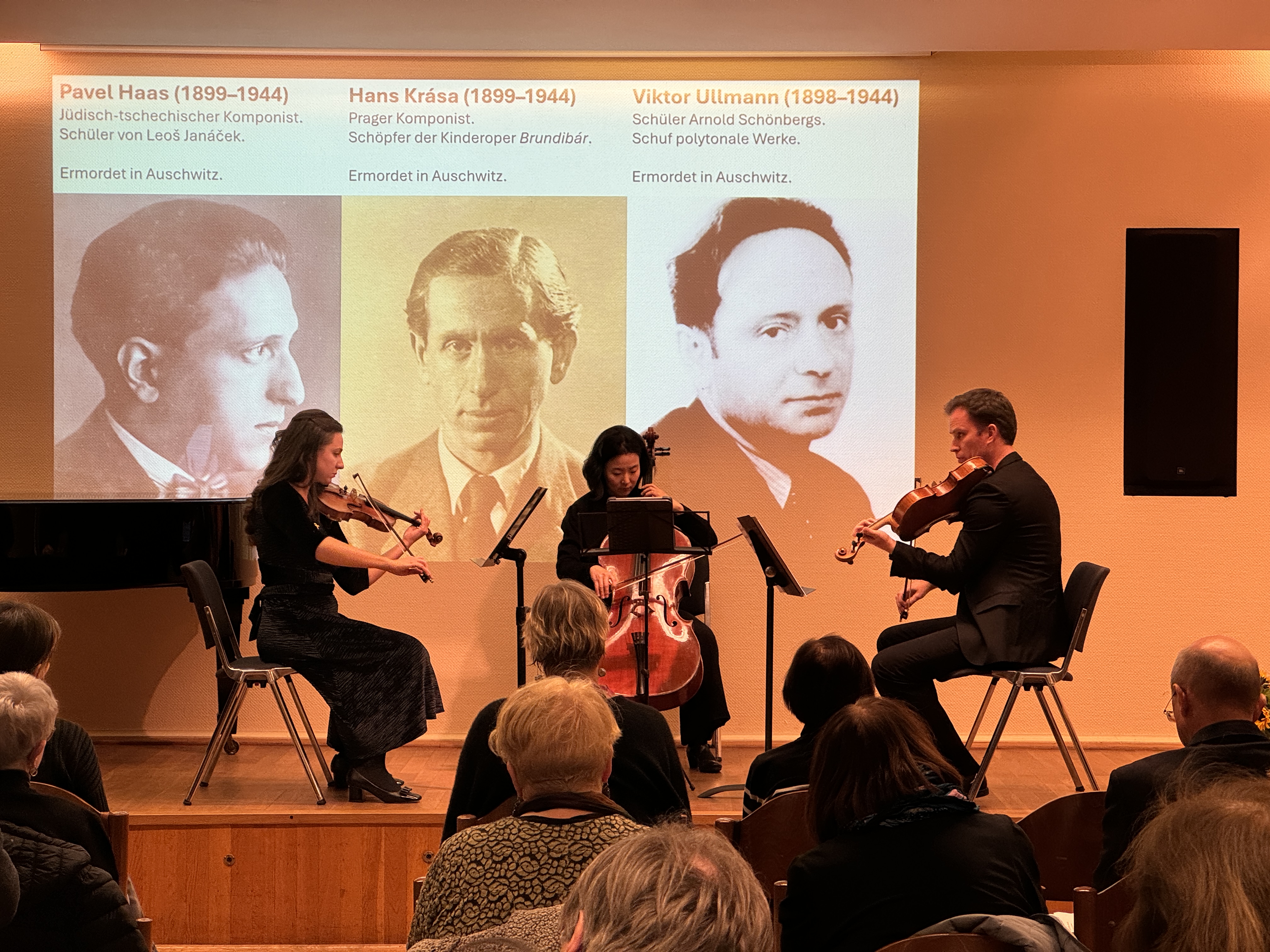 Der stetige Blick auf die drei Komponisten während gleichzeitig ihre Musik ins Ohr ging verband sich mit dem Gedanken an ihre Ermordung in Auschwitz.